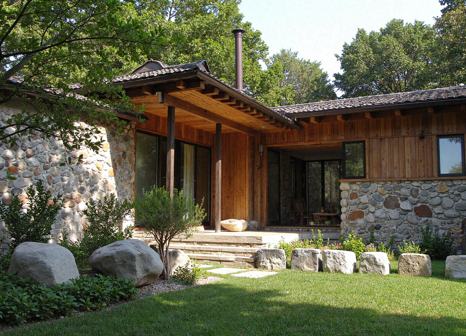 This wabi-sabi house beautifully combines rustic wood, natural stone, and earthy textures, creating a peaceful, harmonious atmosphere that embraces imperfection and organic beauty.